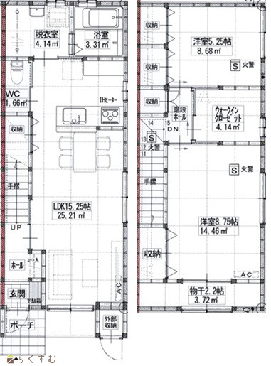 | 間取り | 2LDK (洋室:8.75、5.25) LDK15.25 ウォークインクローゼット、外部収納 |