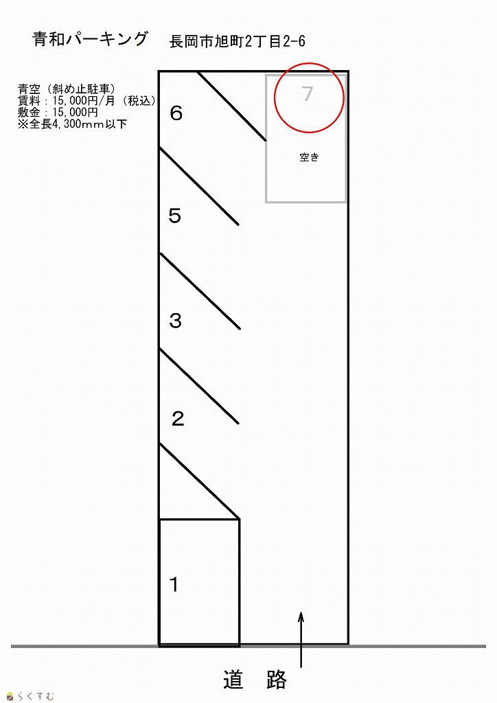 長岡駅まで徒歩約7分!消雪設備完備の駐車場!※全長4,300mm以下