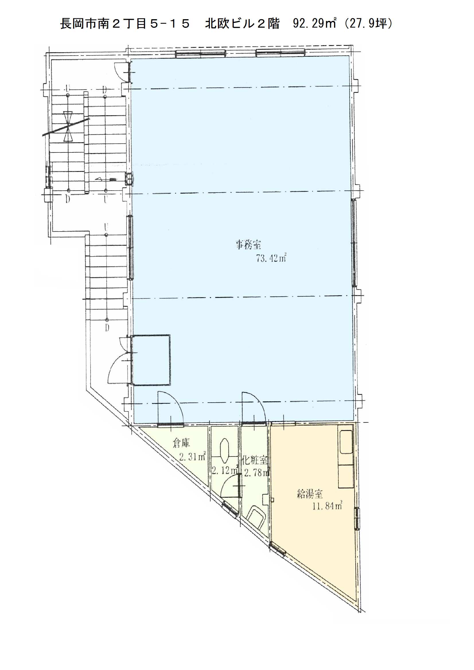 | 北欧ビル事務所2階 新潟県長岡市南町2丁目5-15北欧ビル 事務所 | 92.29㎡ (27.91坪) - 2階 | 不詳 - | 8万円 なし なし | 2ヶ月 なし なし | 事務所 鉄骨鉄筋コン |