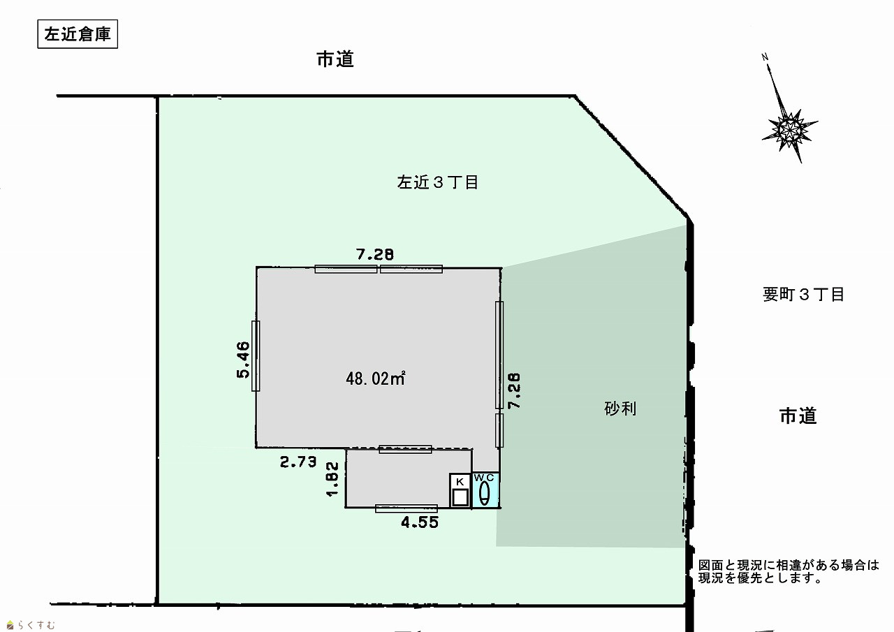 | 物件名 | 左近3丁目 倉庫・軽作業場 ゆったりの角敷地 約68坪 | ||