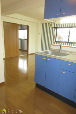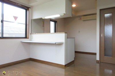 お二人暮らしにぴったりな1LDKのお部屋です。追い焚き付、洗面脱衣場もございます。キッチンはカウンターキッチンとなります。