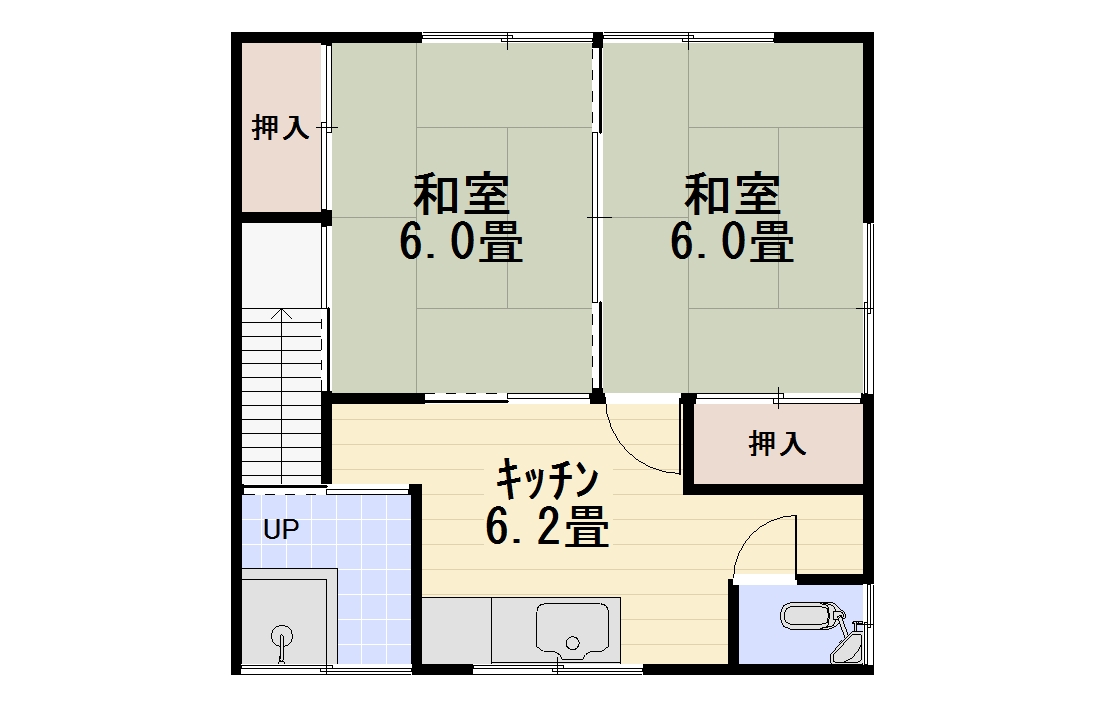 | 間取り | 2DK (和室:6畳、6畳) B・T別室 |
