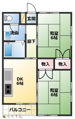 | 間取り | 2DK (和室:6畳、6畳) DK |