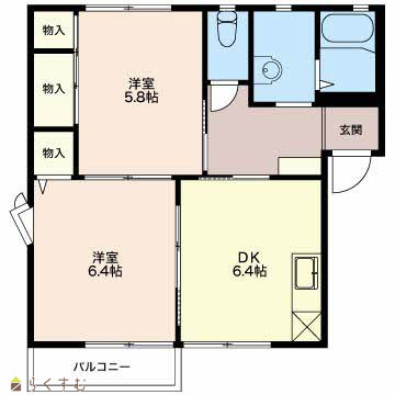 | 間取り | 2DK (洋室:5.8、6.4) DK6.4 |