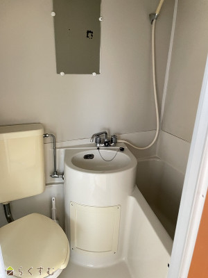 | 設備 | バス停近く、最上階、南向き、ガスコンロ設置可、バストイレ同室、エアコン、都市ガス、洗濯機置場 室内、押入、各居室照明 | ||