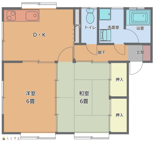 | 間取り | 2K (和室:6畳、6畳) | ||
