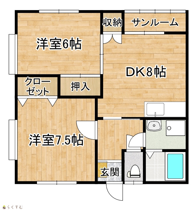 間取り 2DK (洋室:8、6)