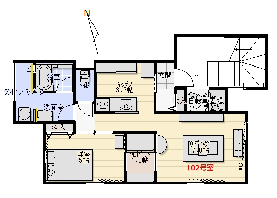 | 所在階/階数 | 1階/2階 | 号室 | 102号室 |