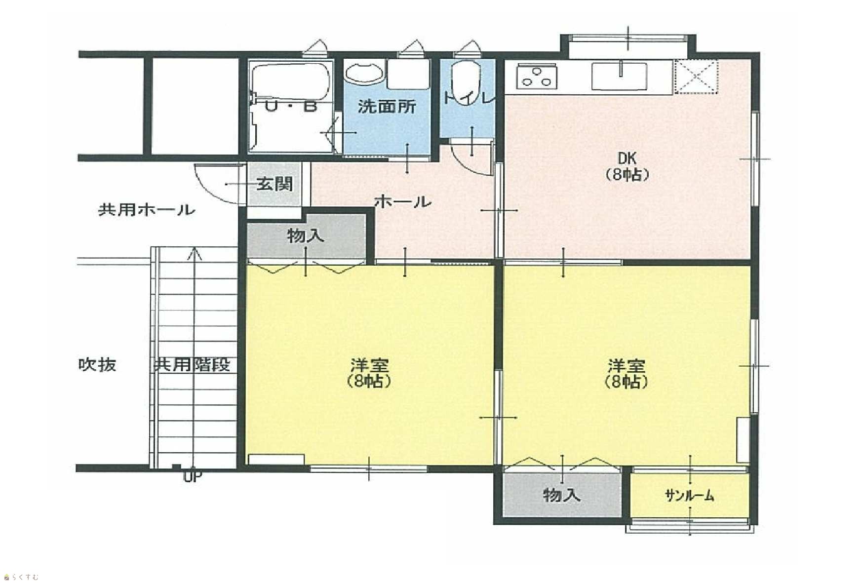| 間取り | 2DK (洋室:8、8) DK8 タイヤ等がしまえるトランクルーム有り |