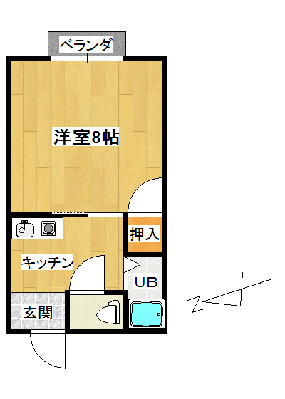 | 間取り | 1K (洋室:8) 全室ベランダ南東向き |