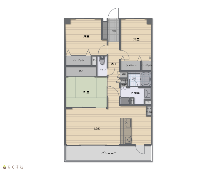 | 面積 | 77.26㎡ /23.37坪 | 方位 | 南 |