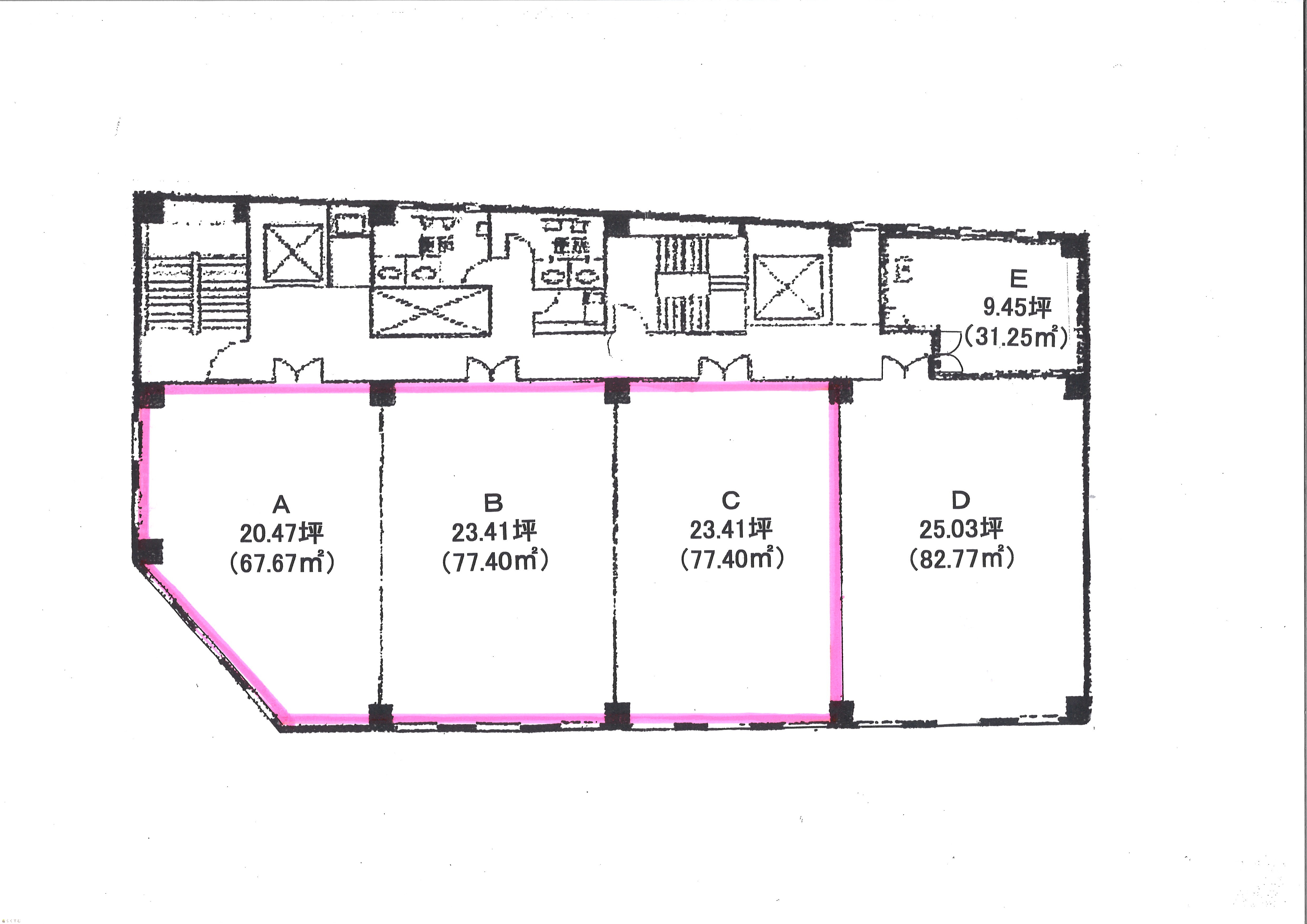 | 備考 | A。B.C号室 各室の賃貸も可能です。 A号室:20.47坪 B号室:23.41坪 C号室:23.41坪 |