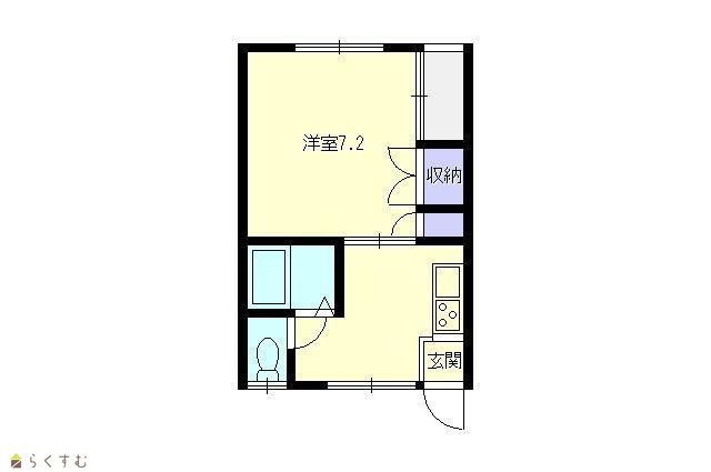 間取り 1K (洋室:7.2)