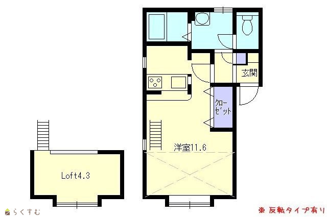 賃料1ヶ月分無料浴室乾燥・追焚機能付IHクッキングヒーター用コンセント有り。4.3帖のロフト付