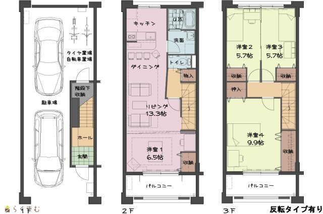 | 間取り | 4LDK (洋室:6.5、9.9、5.7、5.7) | ||