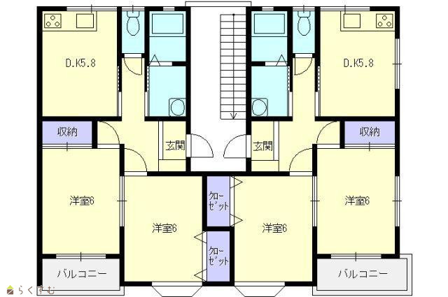 間取り 2DK (洋室:6.0、6.0)