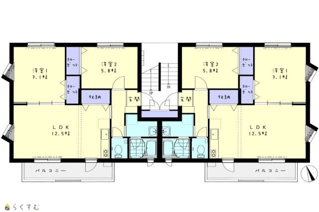 | 間取り | 2LDK (洋室:7.1、5.8) | ||