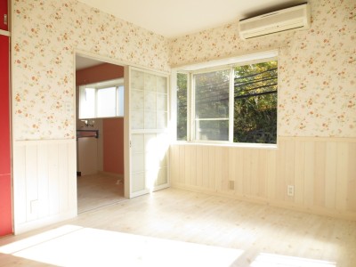 | ピンクと花柄の壁紙がアクセントになってとっても可愛いお部屋です | |||