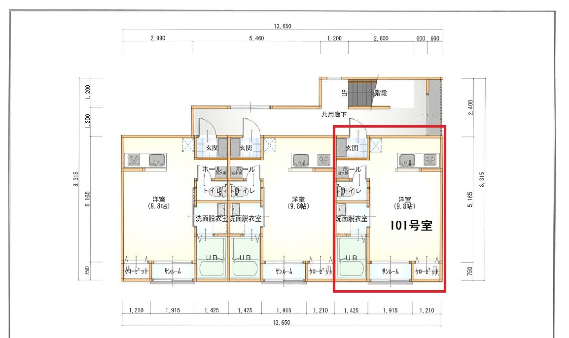| 所在階/階数 | 1階/3階 | 号室 | 101号室 |