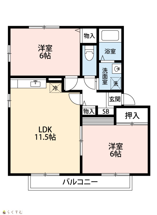 | 間取り | 2LDK (洋室:6、6) LDK11.5 |