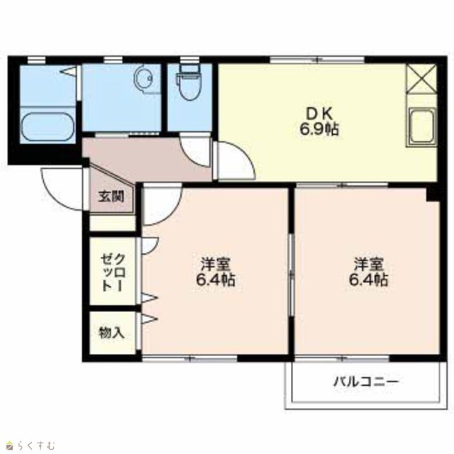 | 間取り | 2DK (洋室:6.4、6.4) | ||