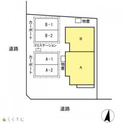| 所在階/階数 | 1階/2階 | 号室 | B号室 |