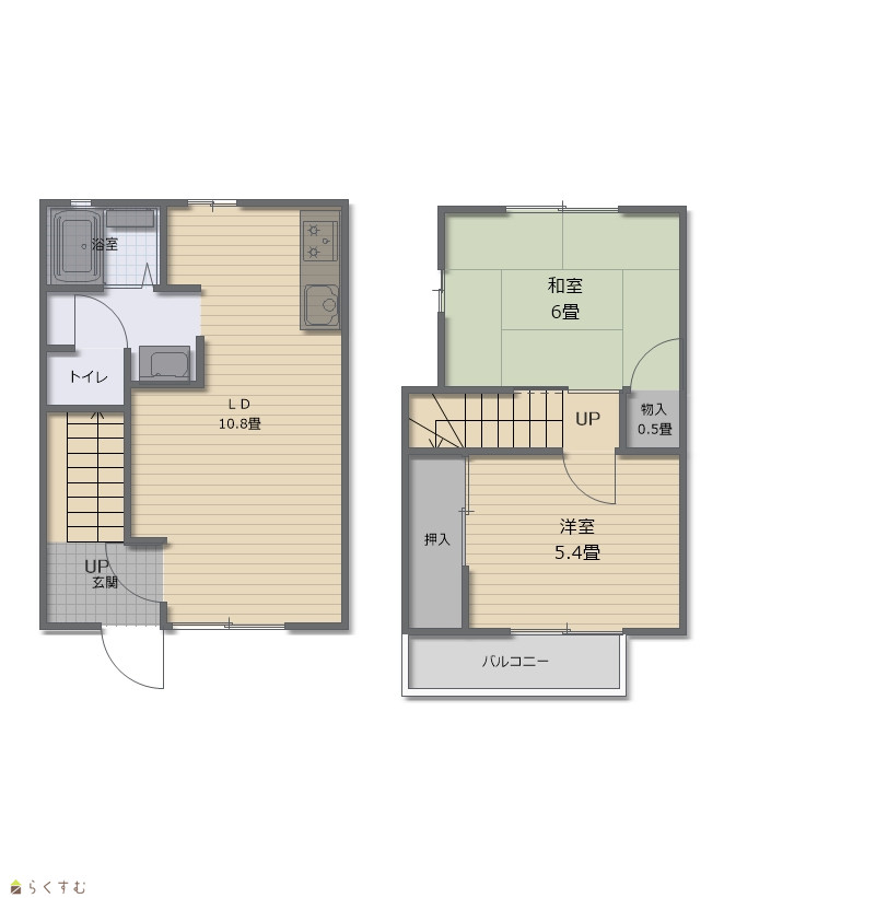 | 間取り | 2LDK (和室:6.0畳) (洋室:5.4) LDK10.3 |