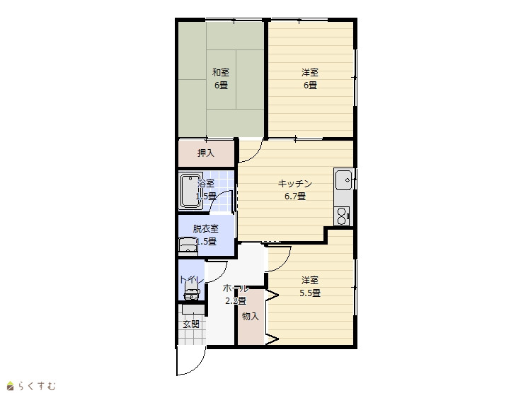 | 間取り | 3DK (洋室:6、6、5.5) 6.7 |