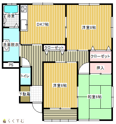 | 間取り | 3DK (和室:6.0畳) (洋室:8.0、6.0) DK7 |