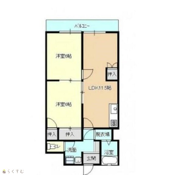 間取り 2LDK (洋室:6、6)