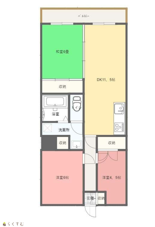 | 間取り | 3DK (和室:6畳) (洋室:6、4.5) DK11.5 |