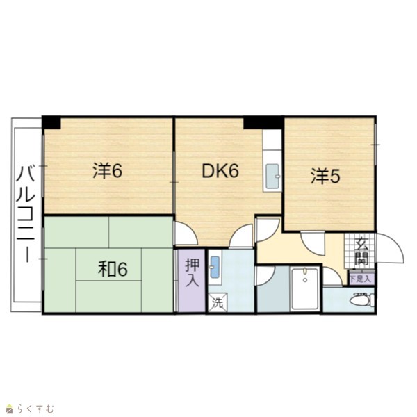 | 間取り | 3DK (和室:6畳) (洋室:6、5) DK6 |