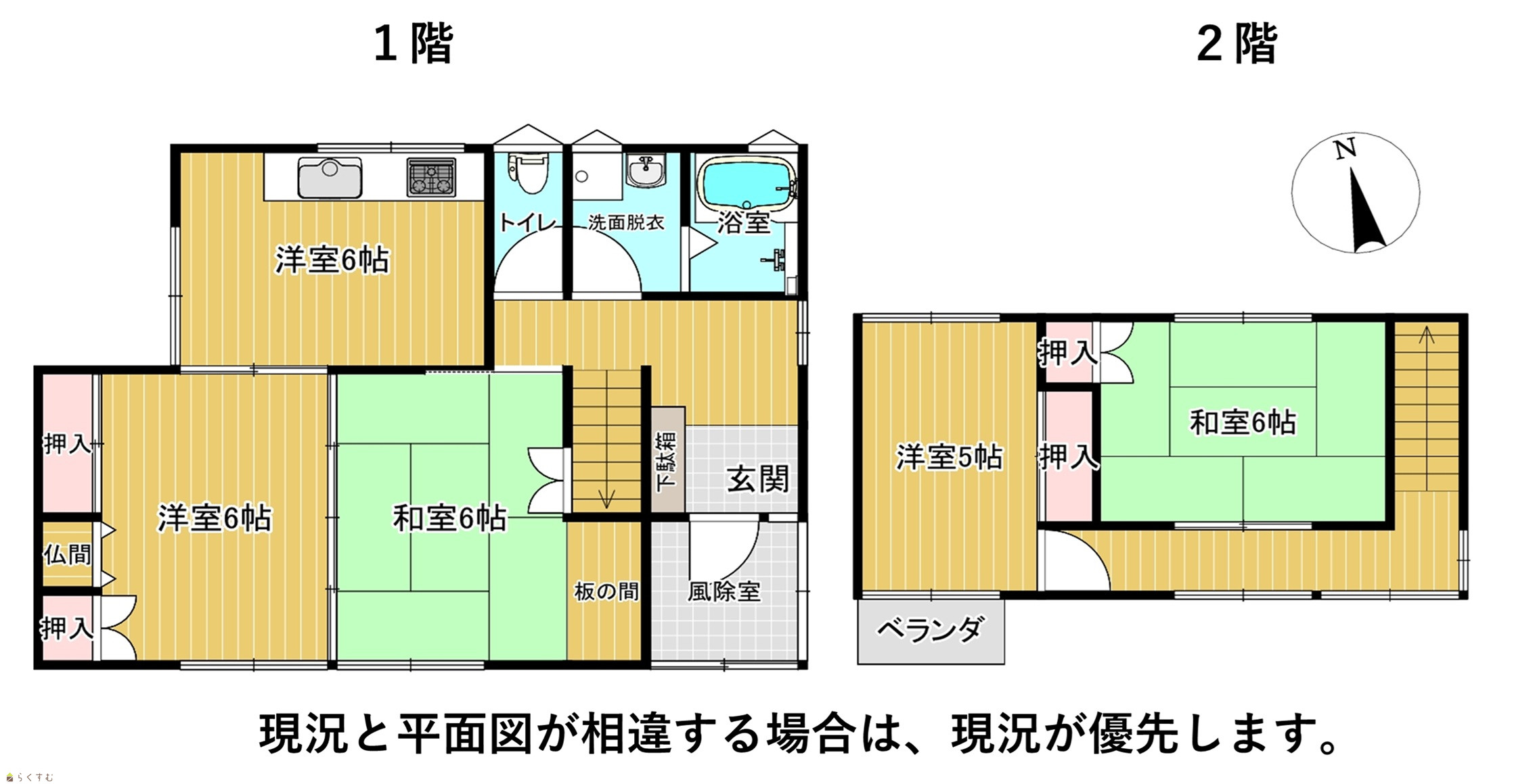 間取り 4DK (和室:6畳、6畳) (洋室:6、6)