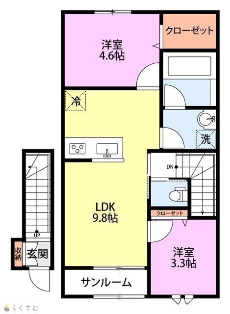 間取り 2LDK (洋室:4.6、3.3)