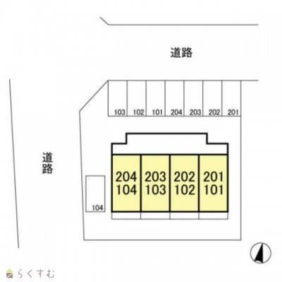 | 所在階/階数 | 1階/2階 | 号室 | 104号室 |