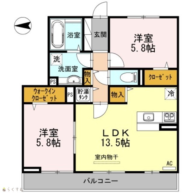 | 間取り | 2LDK (洋室:5.8、5.8) | ||