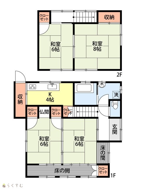 間取り 4K (和室:8畳、6畳、6畳、6畳)