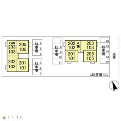 所在階/階数 1階/2階 号室 103号室