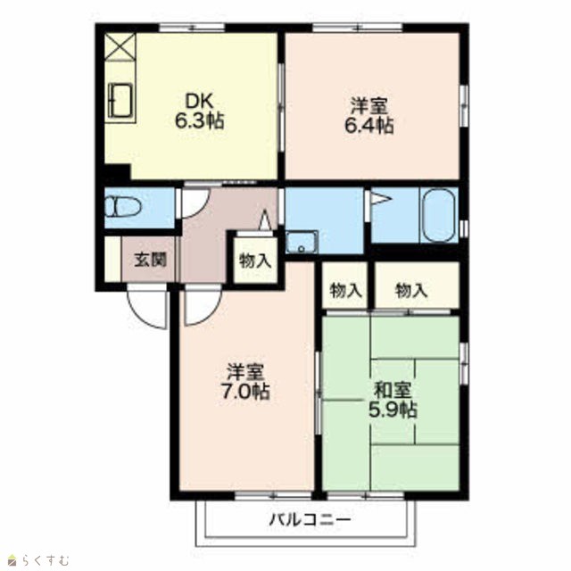 間取り 3DK (和室:5.9畳) (洋室:7、6.4)