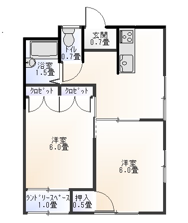 | 間取り | 2DK (洋室:6、6) DK サンルームあり |