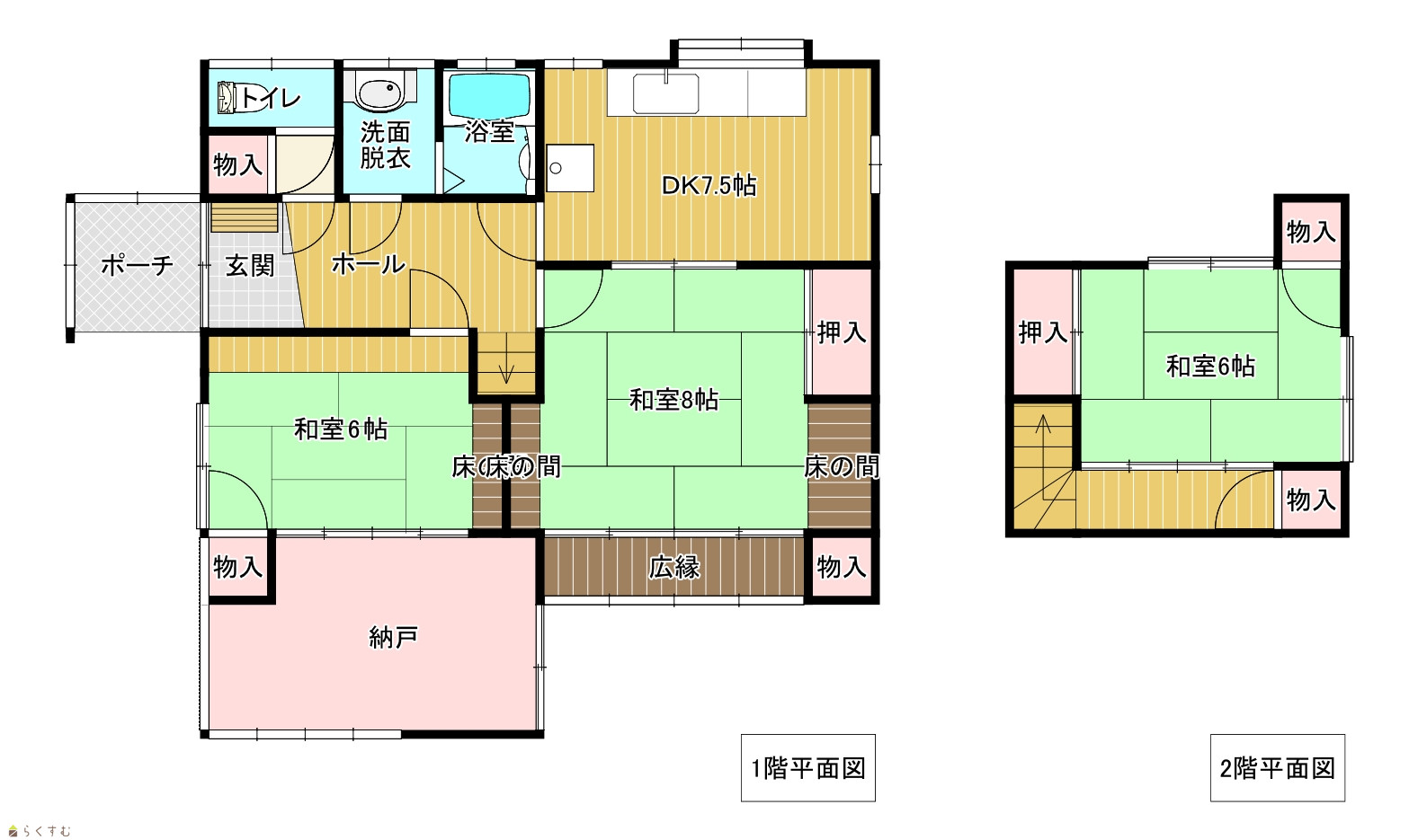 | 間取り | 3DK (和室:8畳、6畳、6畳) DK7.5 納戸 |