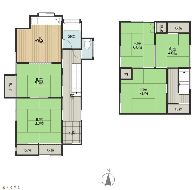 | 間取り | 5DK (和室:8畳、6畳、7.5畳、6畳、4.6畳) DK7.5 |