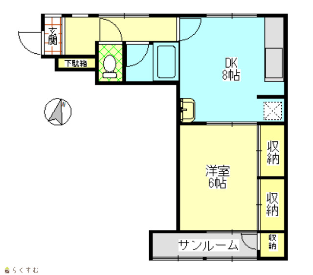 | 間取り | 1DK (和室:6畳) DK8 サンルーム付き |