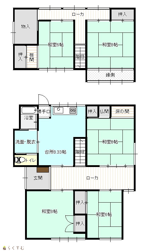 間取り 5DK (和室:8畳、8畳、6畳、6畳、6畳)