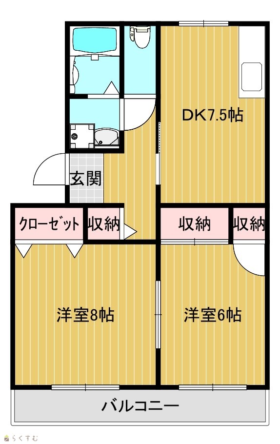 | 間取り | 2DK (洋室:8、6) DK7.5 |