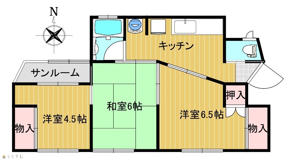 | 間取り | 3DK (和室:6畳) (洋室:6、4.5) DK4.5 |
