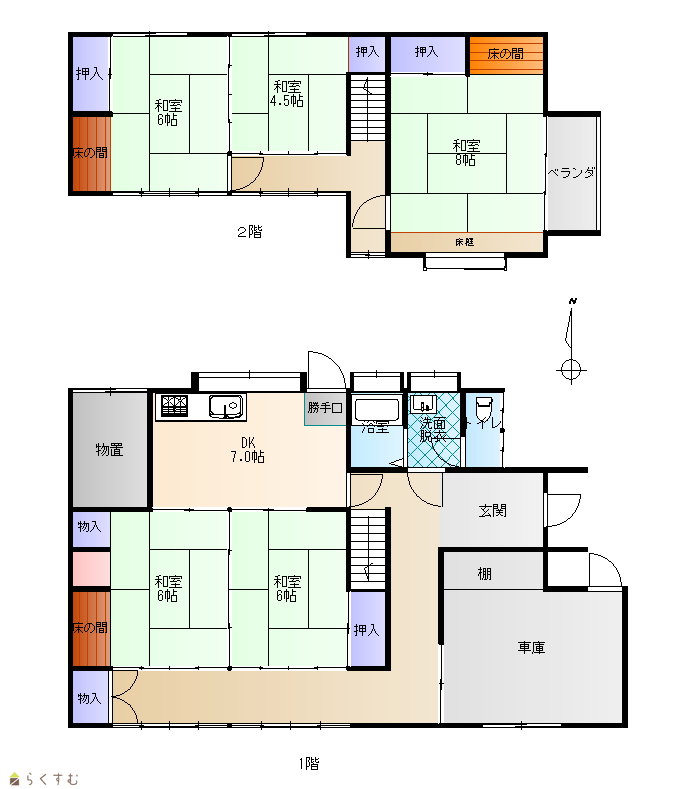間取り 5DK (和室:6.0畳、6.0畳、8.0畳、4.5畳、6.0畳)