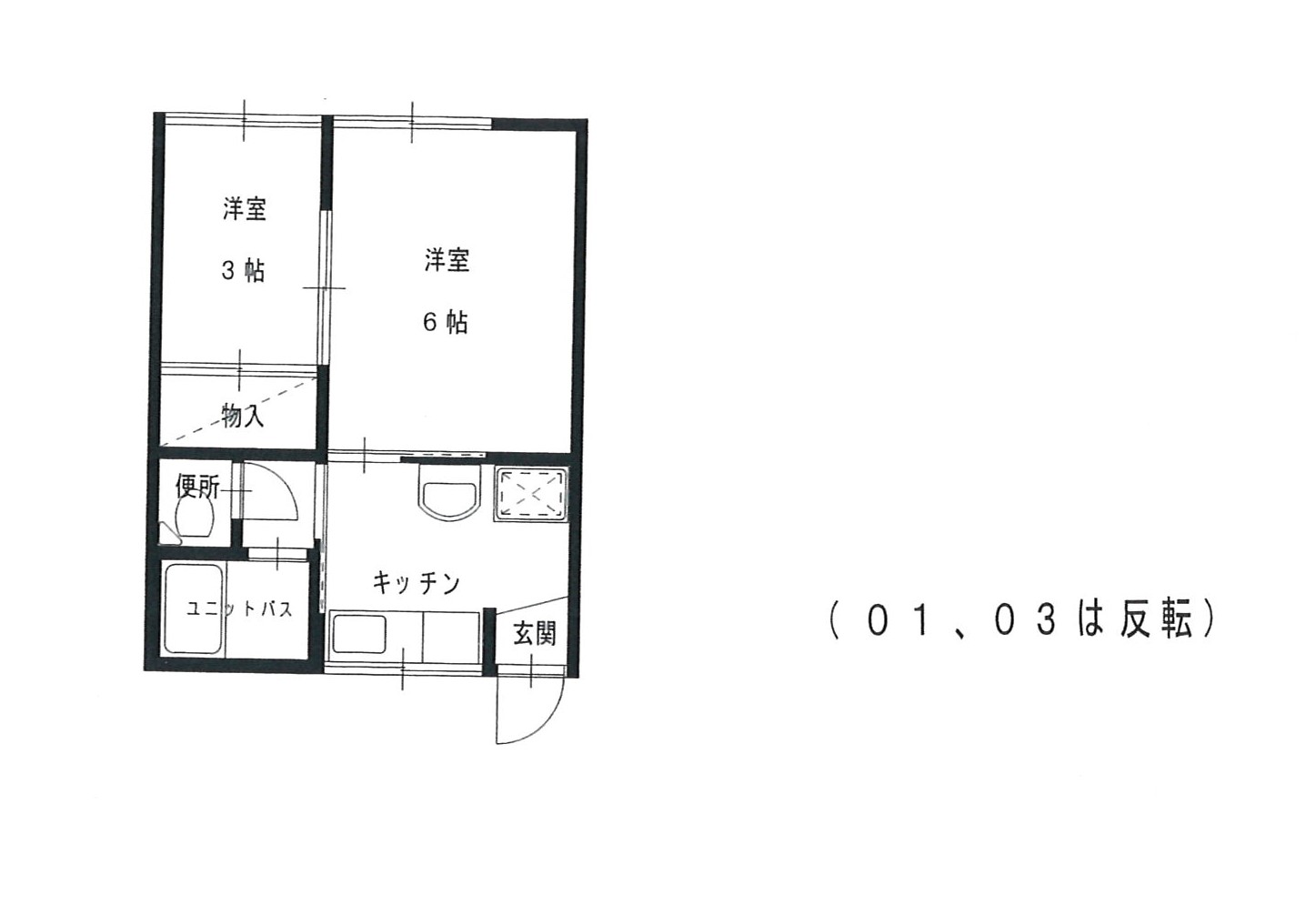 | 間取り | 2K (洋室:6、3) | ||