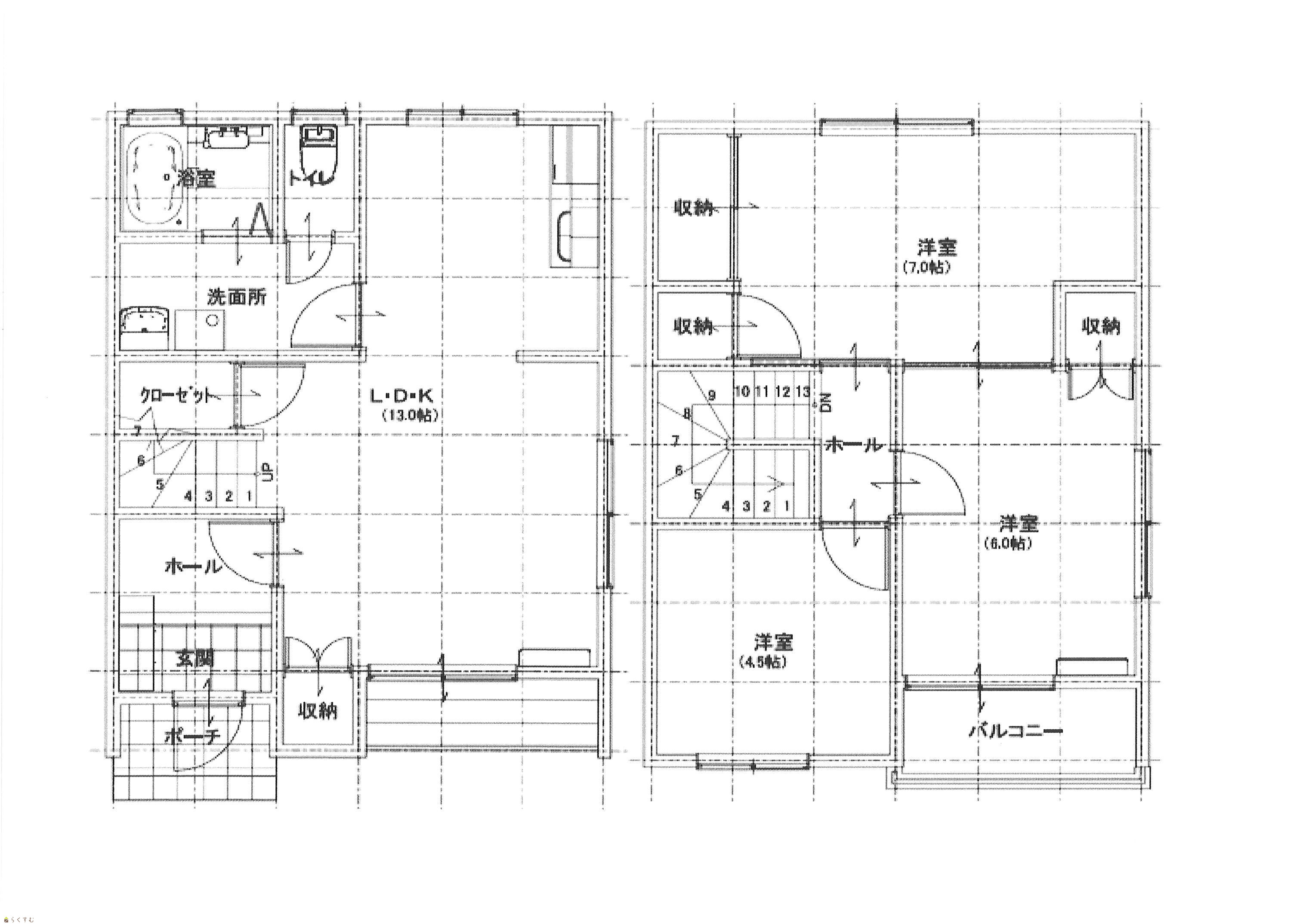 | 間取り | 3LDK (洋室:7、6、4.5) 13LDK |
