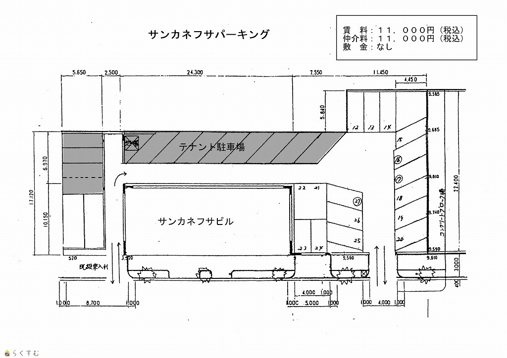 | 備考 | ・出入口区画のため大きめなお車は不可となります。(小型車と普通車のみ) ・3月1日から1台軽自動車専用区画空き(10,000円/月) |